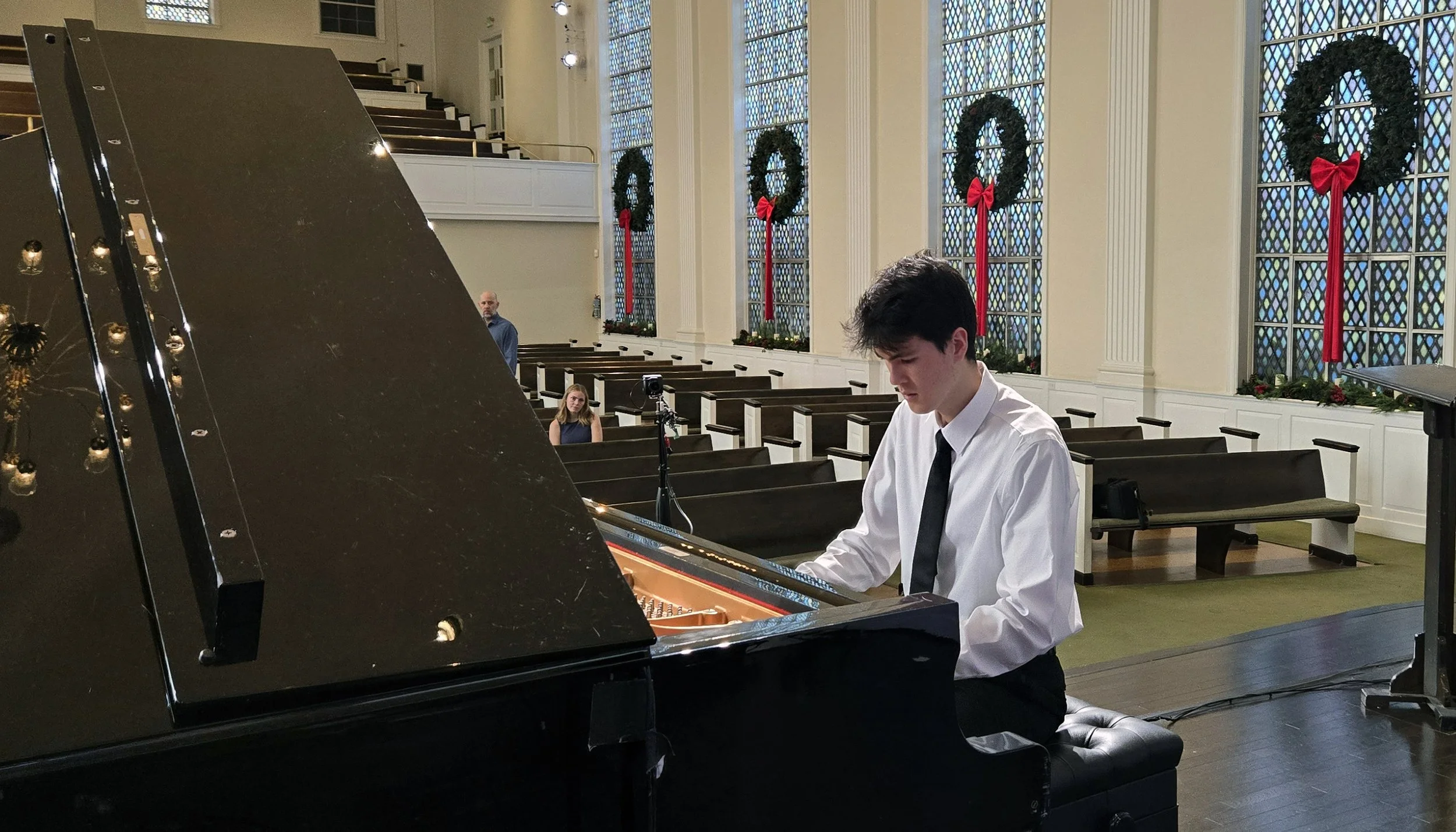 Tim McKay is the young American pianist who won the MTNA Young Artist Piano Competition in March of 2025. Audiences enjoyed two impressive concerts, and both venues were beautifully decked out for the holidays.